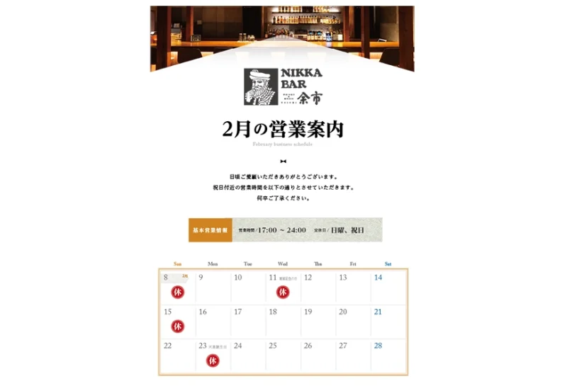 | 店名 | Whisky & Music NIKKA BAR 余市 |